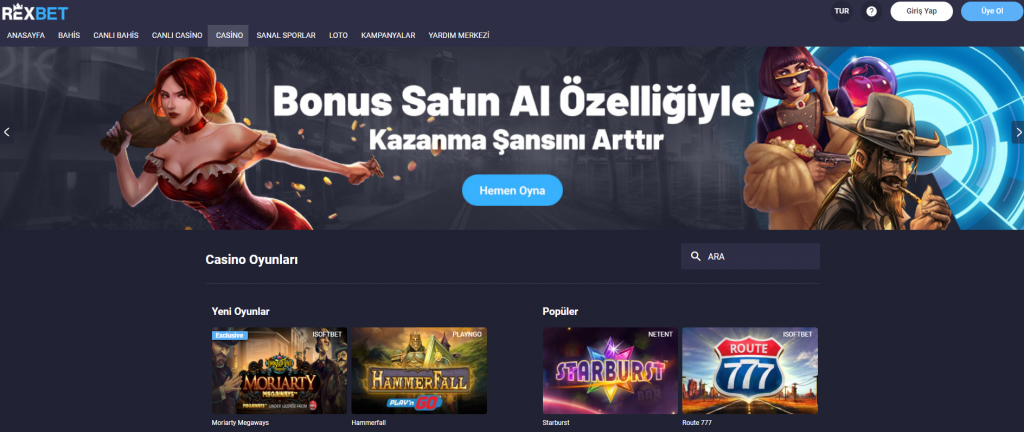 Dünyanın en iyi oyun sağlayıcılarının; YggDrasil, Netent, iSoftbet, Play’n Go, Evolution Gaming gibi, kazandırma oranı en yüksek casino oyunlarını Rexbet Casino lobisinde bulabilirsin. Üstelik bu lobide sadece modern slot oyunlarını değil yıllardır oynadığınız klasik slot makineleri de seni bekliyor.